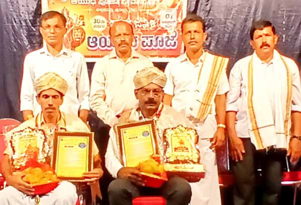 ಪದ್ಮಶ್ರೀ ಪುರಸ್ಕೃತ ಸತ್ಯನಾರಾಯಣ ಬೆಳೇರಿ ಹಾಗೂ ,ನಿವೃತ್ತ ಸಹಾಯಕ ಪೋಲಿಸ್ ಉಪನಿರೀಕ್ಷಕ ಬಿ. ರವೀಂದ್ರನಾಥ ರೈ ಬೋಳಂಕೂಡ್ಲು ರವರಿಗೆ ಪೇಟ ಧರಿಸಿ, ಸಾಲು,ಹೊದಿಸಿ, ಹಾರಹಾಕಿ, ಫಲಪುಷ್ಪ, ಸ್ಮರಣಿಕೆ ನೀಡಿ ಗೌರವಾರ್ಪಣೆ ಮಾಡಲಾಯಿತು.ರಾಜೇಶ್ ಸುಳ್ಯಪದವು ಚಂದ್ರಶೇಖರ ಸುಳ್ಯ ಪದವು ಸನ್ಮಾನ ಪತ್ರ ವಾಚಿಸಿದರು.ರಾತ್ರಿ ಚೈತನ್ಯ ಕಲಾವಿದರು ಬೈಲೂರು ಇವರಿಂದ ಅಷ್ಟಮಿ ತುಳು ನಾಟಕ ನಡೆಯಿತು.