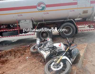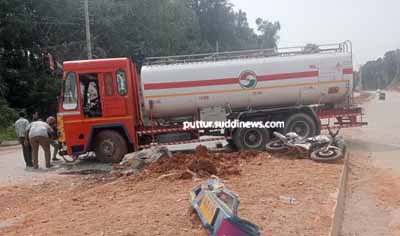 ಅದೃಷ್ಟವಶಾತ್ ಪಾರು: ಸ್ವಲ್ಪದರಲ್ಲೇ ಇವರ ಬೈಕ್ ಟ್ಯಾಂಕರ್ನ ಮುಂಭಾಗದ ನಡು ಭಾಗಕ್ಕೆ ಢಿಕ್ಕಿ ಹೊಡೆಯುವುದು ತಪ್ಪಿದ್ದು, ಟ್ಯಾಂಕರ್ನ ಮುಂಭಾಗದ ಬಲ ಭಾಗಕ್ಕೆ ಢಿಕ್ಕಿ ಹೊಡೆದಿದ್ದರಿಂದ ಇವರಿದ್ದ ಬೈಕ್ ಡಿವೈಡರ್ನ ಮೇಲೆ ಎಸೆಯಲ್ಪಟ್ಟಿದ್ದೆ. ಇಲ್ಲಿ ಮಣ್ಣಿನ ರಾಶಿಯಿದ್ದ ಕಾರಣ ಇವರೂ ಕೂಡಾ ಇದರ ಮೇಲೆ ಬಿದ್ದಿದ್ದು, ಅದೃಷ್ಟವಶಾತ್ ಪ್ರಾಣಾಪಾಯದಿಂದ ಪಾರಾಗಿದ್ದಾರೆ. ಢಿಕ್ಕಿಯ ರಭಸಕ್ಕೆ ಬೈಕ್ ನಜ್ಜುಗುಜ್ಜಾಗಿದ್ದು, ಹೆಲ್ಮೆಟ್ ಎರಡು ಭಾಗವಾಗಿದೆ. ಗಾಯಾಳುಗಳನ್ನು ಉಪ್ಪಿನಂಗಡಿಯ ಖಾಸಗಿ ಆಸ್ಪತ್ರೆಗೆ ದಾಖಲಿಸಲಾಗಿದ್ದು, ಪುತ್ತೂರು ಸಂಚಾರಿ ಪೊಲೀಸರು ಸ್ಥಳಕ್ಕೆ ಬಂದು ಪರಿಶೀಲನೆ ನಡೆಸಿದ್ದಾರೆ.