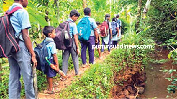 ಪುಣಚ: ಕೆಲ್ಲಾಳಿ-ಹಿತ್ತಿಲು ಕಾಲುದಾರಿ ಕುಸಿತ :ಭಯದಿಂದಲೇ ನಡೆದುಕೊಂಡು ಹೋಗುತ್ತಿರುವ ಶಾಲಾ ವಿದ್ಯಾರ್ಥಿಗಳು