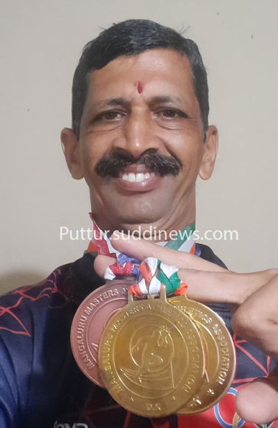 ಪುತ್ತೂರು: ಮಂಗಳೂರು ಮಾಸ್ಟರ್ಸ್ ಅಥ್ಲೆಟಿಕ್ಸ್ ಅಸೋಸಿಯೇಷನ್ ವತಿಯಿಂದ ಮಂಗಳೂರಿನ ಮಂಗಳಾ ಕ್ರೀಡಾಂಗಣದಲ್ಲಿ ಅ.19ರಂದು ಆಯೋಜಿತವಾದ 22ನೇ ದಕ್ಷಿಣ ಕನ್ನಡ ಜಿಲ್ಲಾ ಮಾಸ್ಟರ್ಸ್ ಕ್ರೀಡಾಕೂಟದಲ್ಲಿ ಪುತ್ತೂರು ತಾಲೂಕು ಅರಿಯಡ್ಕ ಗ್ರಾಮದ ವೆಂಕಟೇಶ್ ಪ್ರಸಾದ್ ದರ್ಬೆತ್ತಡ್ಕ ಇವರು 50ರ ವಯೋಮಾನದ ಎತ್ತರ ಜಿಗಿತ ಮತ್ತು 5 ಕಿ.ಮೀ ವೇಗದ ನಡಿಗೆಯಲ್ಲಿ ಚಿನ್ನದ ಪದಕ ಹಾಗೂ ಉದ್ದ ಜಿಗಿತದಲ್ಲಿ ಕಂಚಿನ ಪದಕ ಗಳಿಸಿ ಡಿಸೆಂಬರ್ ನಲ್ಲಿ ಕೋಲಾರದಲ್ಲಿ ನಡೆಯುವ ರಾಜ್ಯ ಮಟ್ಟದ ಮಾಸ್ಟರ್ಸ್ ಕ್ರೀಡಾಕೂಟದಲ್ಲಿ ಭಾಗವಹಿಸಲಿದ್ದಾರೆ.
