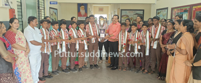 ಶಾಲೆಯಲ್ಲಿ ನಡೆದ ಸರಳ ಸಮಾರಂಭದಲ್ಲಿ ಶಾಸಕರು ವಾಲಿಬಾಲ್ ತಂಡದಲ್ಲಿರುವ ವಿದ್ಯಾರ್ಥಿಗಳಾದ ಮೊಹಮ್ಮದ್ ತೌಫೀಕ್, ಕೇಟನ್ದಿಕ್ಷನ್ ತೋರಸ್, ಅಬೂಬಕ್ಕರ್ ಶಾನ್, ಮೊಹಮ್ಮದ್ ಅಕ್ಮಲ್, ಸಂಚಯ್ ಎಸ್, ಅಬ್ದುಲ್ ಹನನ್, ಮೊಹಮ್ಮದ್ ಹೂದ್, ಶಲೋನ್ಸೆರಾವೋ, ಮಹಮ್ಮದ್ ಖಲಂದರ್ ಶಹಜಾದ್, ನಿಶ್ಚಲ್ ಶಾಂತವನ ಸಿ, ಅಲನ್ ಜೋಶ್ಮೆಲ್ ಡಿಸೋಜಾ, ಮಹಮ್ಮದ್ ರಹೀಂ ರನ್ನು ಶಾಸಕರು ಶಾಲು ಹೊದಿಸಿ ಸನ್ಮಾನಿಸಿ ರಾಷ್ಟ್ರಮಟ್ಟದಲ್ಲಿ ವಿಜೇತರಾಗುವ ಮೂಲಕ ಪುತ್ತೂರಿನ ಕೀರ್ತಿ ಪತಾಕೆಯನ್ನು ಎತ್ತಿ ಹಿಡಿಯುವಂತೆ ಹರಸಿದಿರು. ಈ ಸಂದರ್ಭದಲ್ಲಿ ಶಾಲೆಯ ಮುಖ್ಯ ಶಿಕ್ಷಕಿ ದೈಹಿಕ ಶಿಕ್ಷಕರಾದ ನಿರಂಜನ್ ಎಂ, ಅಕ್ಷಯ್ ಕೆ, ಶಿಕ್ಷಕಿ ಚಂದ್ರಪ್ರಭಾ ಉಪಸ್ಥಿತರಿದ್ದರು.