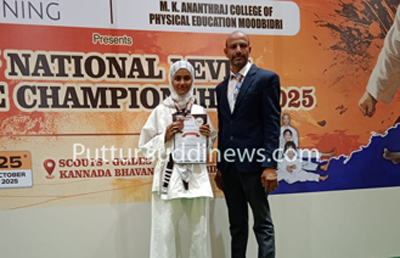 ಇರ್ವತ್ತೂರು ಪದವು: ಬುರೂಜ್ ಆಂಗ್ಲ ಮಾಧ್ಯಮ ಶಾಲೆಯ 8ನೇ ತರಗತಿ ವಿದ್ಯಾರ್ಥಿನಿ ಅಫ್ರಾ ರಿಂಷಾ ಮೂಡುಬಿದಿರೆಯ ಎಂ.ಕೆ.ಅನಂತರಾಜ್ ಕಾಲೇಜು ಪಿಸಿಕಲ್ ಎಜುಕೇಷನ್ ಇಲ್ಲಿ ನಡೆದ ಸೋರಿನ್ ರಿಯು ಕರಾಟೆ ಅಸೋಸಿಯೇಶನ್ ನಲ್ಲಿ ನಡೆಸಿದ 8ನೇ ರಾಷ್ಟ್ರೀಯ ಕರಾಟೆ ಚಾಂಪಿಯನ್ 2025 ರಲ್ಲಿ ಕಟಾ ಮತ್ತು ಕುಮಿಟೆಯಲ್ಲಿ ತೃತೀಯ ಸ್ಥಾನ ಪಡೆದು ಶಾಲೆಗೆ ಹಾಗೂ ಹೆತ್ತವರಿಗೆ ಕೀರ್ತಿ ತಂದಿದ್ದಾರೆ. ಈಕೆ ರಝೀಯಾ ಮತ್ತು ಸಾದಿಕ್ ರವರ ಸುಪುತ್ರಿ. ಎಸ್.ಪಿ.ಮೊಹಮ್ಮದ್ ರಶೀದ್ ಹಾಗೂ ಸೆಲಿಕಾರವರ ಸೊಸೆ.