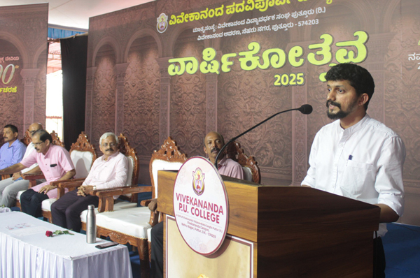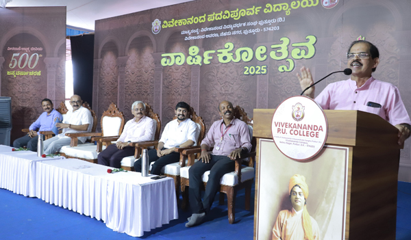 ವಿವೇಕಾನಂದ ಪದವಿಪೂರ್ವ ಕಾಲೇಜಿನ ವೀರರಾಣಿ ಅಬ್ಬಕ್ಕ ಸಭಾವೇದಿಕೆಯಲ್ಲಿ ನಡೆದ ಪ್ರಸಕ್ತ ಶೈಕ್ಷಣಿಕ ವರ್ಷದ ವಾರ್ಷಿಕೋತ್ಸವದ ಮೊದಲನೇ ದಿನ ʼಸಾಧನಾ ದರ್ಪಣಂʼ ಸಭಾ ಕಾರ್ಯಕ್ರಮದ ಮುಖ್ಯ ಅತಿಥಿಗಳಾಗಿ ಭಾಗವಹಿಸಿ, ಜೀವನವು ನಮ್ಮದು ಹಾಗೂ ಅದನ್ನು ರೂಪಿಸಿಕೊಳ್ಳಬೇಕಾದದ್ದೂ ನಾವೇ. ವಿದ್ಯಾರ್ಥಿಗಳಾದವರು ಜ್ಞಾನ-ವಿಜ್ಞಾನ ಎರಡನ್ನೂ ಮೇಳೈಸಿಕೊಂಡು ಹೋಗಬೇಕು. ಒಂದು ಶಿಕ್ಷಣ ಸಂಸ್ಥೆಯ ನಾಲ್ಕು ಪ್ರಮುಖ ಆಧಾರ ಸ್ತಂಭಗಳೆಂದರೆ ಮಕ್ಕಳು, ಹೆತ್ತವರು, ಅಧ್ಯಾಪಕರು ಹಾಗೂ ಆಡಳಿತಮಂಡಳಿ. ಇವು ಸಮತೋಲನದಲ್ಲಿ ಕಾರ್ಯ ನಿರ್ವಹಿಸಿದಾಗ ಮಾತ್ರ ಸಂಸ್ಥೆಯು ಶ್ರೇಯೋಭಿವೃದ್ಧಿಯನ್ನು ಕಾಣಲು ಸಾಧ್ಯ. ಎಂದು ಹೇಳಿದರು.