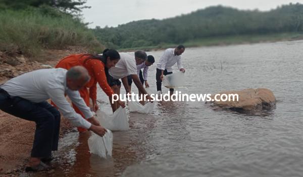 ಉಪ್ಪಿನಂಗಡಿ: ನದಿ ನೀರಿನ ಶುದ್ಧತೆಗಾಗಿ ಮೀನುಗಳ ಸಂತತಿ ವೃದ್ಧಿಗಾಗಿ ಹಾಗೂ ಪ್ರಕೃತಿ ಸಮತೋಲನದ ಉದ್ದೇಶದಿಂದ 34 ನೆಕ್ಕಿಲಾಡಿ ಗ್ರಾಮದ ನಾಲ್ವರ ತಂಡವೊಂದು 10 ಸಾವಿರ ಮೀನಿನ ಮರಿಗಳನ್ನು ಕುಮಾರಧಾರ ನದಿಗೆ ಬಿಡುವ ಮೂಲಕ ಸಾಮಾಜಿಕ ಕಳಕಳಿ ಮೆರೆದಿದೆ.