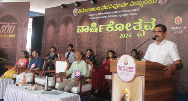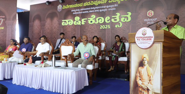 ಕಾರ್ಯಕ್ರಮದ ಅಧ್ಯಕ್ಷತೆಯನ್ನು ವಹಿಸಿದ ಕಾಲೇಜು ಆಡಳಿತಮಂಡಳಿ ಅಧ್ಯಕ್ಷರಾದ ರವೀಂದ್ರ ಪಿ ಮಾತನಾಡುತ್ತಾ , ಆಧುನಿಕತೆಯಿಂದ ನಾವು ಸಾಕಷ್ಟು ಸಂಗತಿಗಳನ್ನು ಪಡೆದುಕೊಂಡಿದ್ದೇವೆ. ಆದರೆ ಅದಕ್ಕಿಂತ ಹೆಚ್ಚಿನದನ್ನು ನಾವು ಏನನ್ನು ಕಳೆದುಕೊಂಡಿದ್ದೇವೆ ಎನ್ನುವುದರ ಅರಿವು ನಮಗಾಗಬೇಕಾಗಿದೆ. ಇಂದಿನ ವಿದ್ಯಾರ್ಥಿಗಳಲ್ಲಿ ಬುದ್ಧಿವಂತಿಕೆಯ ಕೊರತೆ ಇಲ್ಲ , ಬದಲಾಗಿ ವಿವೇಕದ ಕೊರತೆ ಇದೆ. ಶಿಕ್ಷಣವೆನ್ನುವುದು ಕೇವಲ ಹೊಟ್ಟೆಪಾಡಿಗಾಗಿ ಅಲ್ಲ. ವಿವೇಕವನ್ನು ಜಾಗೃತಗೊಳಿಸುವುದೇ ಶಿಕ್ಷಣದ ನಿಜವಾದ ಗುರಿ. ಈ ರೀತಿಯ ಪ್ರಜ್ಞೆಯನ್ನು ಬೆಳೆಸುವಲ್ಲಿ ವಿವೇಕಾನಂದ ಶಿಕ್ಷಣ ಸಂಸ್ಥೆಗಳು ಕಾರ್ಯನಿರ್ವಹಿಸುತ್ತಿವೆ ಎಂದು ಹೇಳಿದರು.