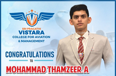 ಪುತ್ತೂರು: ಪುತ್ತೂರಿನ ಎಪಿಎಂಸಿ ರಸ್ತೆಯ ಮಾನೈ ಆರ್ಕ್ ನಲ್ಲಿ ಕಾರ್ಯನಿರ್ವಹಿಸುತ್ತಿರುವ ಶ್ರೀ ಪ್ರಗತಿ ವಿಸ್ತಾರ ಕಾಲೇಜ್ ಫಾರ್ ಏವಿಯೇಶನ್ ಆಂಡ್ ಮ್ಯಾನೇಜ್ಮೆಂಟ್ನ ವಿದ್ಯಾರ್ಥಿ ಮಹಮ್ಮದ್ ತಮ್ಜೀರ್ ಏರ್ ಇಂಡಿಯಾ SATS ನಲ್ಲಿ ಕಸ್ಟಮರ್ ಸರ್ವಿಸ್ ಎಕ್ಸಿಕ್ಯೂಟಿವ್ ಹುದ್ದೆಗೆ ಬೆಂಗಳೂರಿನ ಕೆಂಪೇಗೌಡ ಅಂತರರಾಷ್ಟ್ರೀಯ ವಿಮಾನ ನಿಲ್ದಾಣದಲ್ಲಿ ನೇಮಕಗೊಂಡಿರುತ್ತಾರೆ.