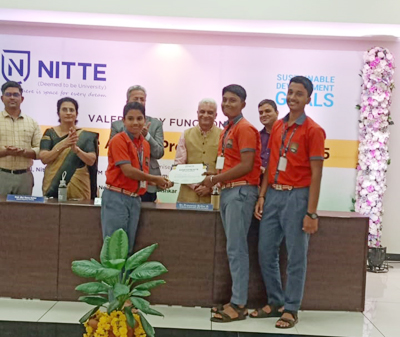 9ನೇ ತರಗತಿಯ ತುಷಾರ್ ಪಿ.ವಿ., ನಿಕ್ಷೇಪ್ ಮತ್ತು ಚಾರುದತ್ತ ಪಕ್ಕಳ : “ವೇಗಿ ವೋಲ್ಟ್” (Vegi Volt) ಎಂಬ ವಿಷಯದ ಕುರಿತು ಪ್ರಸ್ತುತ ಪಡಿಸಿ, ತೃತೀಯ ಬಹುಮಾನ (ಪ್ರಶಸ್ತಿ ಪತ್ರ ಮತ್ತು ರೂ.3000) ಪಡೆದಿದ್ದಾರೆ.