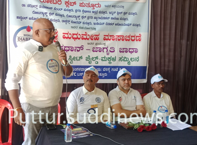 ಪುತ್ತೂರು: ರೋಟರಿ ಕ್ಲಬ್ ಪುತ್ತೂರು ಇದರ ಆಶ್ರಯದಲ್ಲಿ, ಡಾ.ನಝೀರ್ಸ್ ಡಯಾಬಿಟಿಸ್ ಸೆಂಟರ್ ಪುತ್ತೂರು, ಪ್ರಗತಿ ಸ್ಪೆಷಾಲಿಟಿ ಆಸ್ಪತ್ರೆ ಪುತ್ತೂರು, ಇನ್ನರ್ವೀಲ್ ಕ್ಲಬ್ ಪುತ್ತೂರು, ರೋಟರ್ಯಾಕ್ಟ್ ಕ್ಲಬ್ ಪುತ್ತೂರು, ರೋಟರ್ಯಾಕ್ಟ್ ಕ್ಲಬ್ ಪ್ರಗತಿ ಪ್ಯಾರಾಮೆಡಿಕಲ್ ಕಾಲೇಜು ಪುತ್ತೂರು, ಹಾಸ್ಟಿಟಲ್ ಅಸೋಸಿಯೇಷನ್ ಪುತ್ತೂರು, ಡಾಕ್ಟರ್ಸ್ ಪೋರಮ್ ಪುತ್ತೂರು, ಇಂಡಿಯನ್ ಮೆಡಿಕಲ್ ಅಸೋಸಿಯೇಷನ್ ಪುತ್ತೂರು ಇವುಗಳ ಸಹಯೋಗದಲ್ಲಿ ನ.14ರಂದು ಆಚರಿಸಲ್ಪಡುವ “ವಿಶ್ವ ಮಧುಮೇಹ ದಿನಾಚರಣೆ” ಪ್ರಯುಕ್ತ ವಾಕಥಾನ್-ಜಾಗೃತಿ ಜಾಥಾ ಮತ್ತು ಪ್ರಾಜೆಕ್ಟ್ ಸ್ವೀಟ್ ಚೈಲ್ಡ್ ಮಕ್ಕಳ ಸಮ್ಮಿಲನ ಕಾರ್ಯಕ್ರಮದ ಜಾಥಾದ ಉದ್ಘಾಟನೆ ಪುತ್ತೂರು ಕೆಎಸ್ಆರ್ಟಿಸಿ ಬಸ್ಸು ನಿಲ್ದಾಣದಲ್ಲಿ ಬಳಿಕ ಸಭಾ ಕಾರ್ಯಕ್ರಮ ಪುತ್ತೂರು ಸಾರ್ವಜನಿಕ ಸರಕಾರಿ ಆಸ್ಪತ್ರೆಯ ಆವರಣದಲ್ಲಿ ನ.11ರಂದು ಜರಗಿತು.