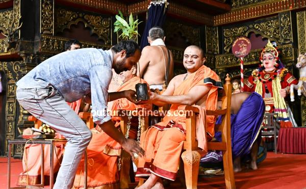 ಪುತ್ತೂರು: ಉಡುಪಿ ಕೃಷ್ಣಮಠದಲ್ಲಿ ಪುತ್ತಿಗೆ ಶ್ರೀ ಕೃಷ್ಣ ಮಠದ ಆಶ್ರಯದಲ್ಲಿ ನವೆಂಬರ್ 8ರಿಂದ ಡಿ.7ರವರೆಗೆ ನಡೆಯುತ್ತಿರುವ ಬೃಹತ್ ಗೀತೋತ್ಸವ ಕಾರ್ಯಕ್ರಮದಲ್ಲಿ ನವೆಂಬರ್ 12ರಂದು ನಡೆದ ಸಂತ ಸಂದೇಶ ಕಾರ್ಯಕ್ರಮದಲ್ಲಿ ದೇಶದ ಅನೇಕ ಕಡೆಗಳಲ್ಲಿ ನಾಗಲಿಂಗಪುಷ್ಪವನ್ನು ನೆಟ್ಟ ಪರಸರ ಪ್ರೇಮಿ ವಿನೇಶ್ ಪೂಜಾರಿ ನಿಡ್ಡೋಡಿ ಅವರು ನಾಗಲಿಂಗಪುಷ್ಪದ ಗಿಡವೊಂದನ್ನು ಪುತ್ತಿಗೆ ಮಠದ ಸ್ವಾಮಿಗಳಾದ ಶ್ರೀ ಸುಗುಣೇಂದ್ರ ತೀರ್ಥ ಸ್ವಾಮೀಜಿ,ಶಿಷ್ಯ, ಶ್ರೀ ಈಶ ವಿಠಲದಾಸ ಸ್ವಾಮೀಜಿ ಅವರ ಸಮ್ಮುಖದಲ್ಲಿ ಹಸ್ತಾಂತರಿಸಿದರು.