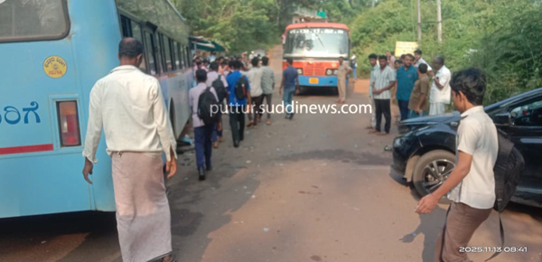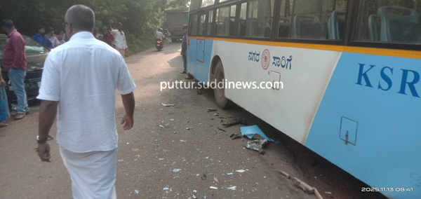 ಕಾರು ಚಾಲಕ ಬೆಳ್ಳಾರೆ ಕಳಂಜ ನಿವಾಸಿ ಹ್ಯಾರೀಸ್ ಗಾಯಗೊಂಡವರು. ಅವರು ಚಲಾಯಿಸುತ್ತಿದ್ದ ಕಾರು ಮತ್ತು ಪುತ್ತೂರಿಗೆ ಸುಲೈಮಾನ್ ಎಂಬವರು ಚಲಾಯಿಸುತ್ತಿದ್ದ ಬಸ್ ನಡುವೆ ಈಶ್ವರಮಂಗಲ ಬೆಳ್ಳಿಚಡವು ಬಳಿ ಡಿಕ್ಕಿ ಸಂಭವಿಸಿದೆ. ಡಿಕ್ಕಿಯ ರಬಸಕ್ಕೆ ಕಾರು ಮತ್ತು ಬಸ್ಗೆ ಹಾನಿಯಾಗಿದ್ದು, ಕಾರು ಚಾಲಕ ಗಾಯಗೊಂಡಿದ್ದಾರೆ ಎಂದು ತಿಳಿದು ಬಂದಿದೆ.