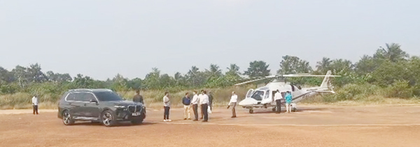 ಭೀಮಾ ಜ್ಯುವೆಲ್ಲರ್ಸ್ ನ ಎಮ್.ಡಿ ವಿಷ್ಣು ಶರ್ಮ ಭಟ್ ಮತ್ತು ಮ್ಯಾನೇಜರ್ ವಿರೇಂದ್ರ ವೆಂಕಟೇಶ್ ಪುತ್ತೂರು ಮೊಟ್ಟೆತ್ತಡ್ಕದ ಹೆಲಿಪ್ಯಾಡ್ ನಲ್ಲಿ ಹೆಲಿಕಾಪ್ಟರ್ ನಿಲ್ಲಿಸಿ ಬಳಿಕ ಕಾರಿನಲ್ಲಿ ಪ್ರಯಾಣಿಸಿದ್ದಾರೆ.