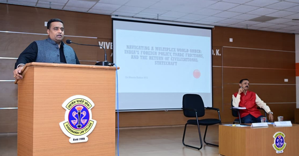 ವೇದಿಕೆಯಲ್ಲಿ ಕಾನೂನು ಮಹಾವಿದ್ಯಾಲಯದ ಸಂಚಾಲಕರಾದ ವಿಜಯನಾರಾಯಣ ಕೆ. ಎಂ., ಪಾಂಡಿಚೇರಿ ವಿಶ್ವವಿದ್ಯಾನಿಲಯದ ರಾಜಕೀಯ ಮತ್ತು ಅಂತಾರಾಷ್ಟ್ರೀಯ ಸಂಬಂಧಗಳು ವಿಭಾಗದ ಸಹಾ ಪ್ರಾಧ್ಯಾಪಕರಾಗಿರುವ ಡಾ. ನಂದಕಿಶೋರ್ ಎಂ.ಎಸ್., ರಾಜಕೀಯ ಮತ್ತು ಆರ್ಥಿಕ ವಿಶ್ಲೇಷಕ, ವಿವೇಕಾನಂದ ಪಾಲಿಟೆಕ್ನಿಕ್ ವಿದ್ಯಾಲಯದ ಆಡಳಿತ ಮಂಡಳಿ ಅಧ್ಯಕ್ಷರಾಗಿರುವ ಶ್ರೀ ವಿಶ್ವೇಶ್ವರ ಭಟ್ ಬಂಗಾರಡ್ಕ, ಮಹಾವಿದ್ಯಾಲಯದ ಕಾನೂನು ಅದ್ಯಯನ ವಿಭಾಗದ ನಿರ್ದೇಶಕರಾಗಿರುವ ಡಾ. ಬಿ. ಕೆ. ರವೀಂದ್ರ ಹಾಗೂ ಮಹಾವಿದ್ಯಾಲಯದ ಅರ್ಥಶಾಸ್ತ್ರ ಸಹಾಯಕ ಪ್ರಾಧ್ಯಾಪಕರಾಗಿರುವ ಶ್ರೀಕೃಷ್ಣ ಭಟ್ ಉಪಸ್ಥಿತರಿದ್ದರು.