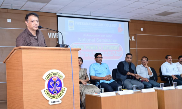 ಪುತ್ತೂರು: ವಿವೇಕಾನಂದ ಕಾನೂನು ಮಹಾವಿದ್ಯಾಲಯದಲ್ಲಿ ‘ವ್ಯಾಪಾರ, ಬಲ ಮತ್ತು ಸ್ವಾಯತ್ತತೆ’ ಎಂಬ ಒಂದು ದಿನದ ರಾಷ್ಟ್ರೀಯ ವಿಚಾರ ಸಂಕಿರಣವು ನಡೆಯಿತು. ಈ ಕಾರ್ಯಕ್ರಮವನ್ನು ವಿವೇಕಾನಂದ ವಿದ್ಯಾವರ್ಧಕ ಸಂಘ ಪುತ್ತೂರು(ರಿ.) ಇದರ ಕಾರ್ಯದರ್ಶಿಯಾಗಿರುವ ಡಾ. ಕೆ. ಎಂ. ಕೃಷ್ಣ ಭಟ್ ಸರ್ ದೀಪ ಬೆಳಗುವ ಮೂಲಕ ಉದ್ಘಾಟಿಸಿದರು.