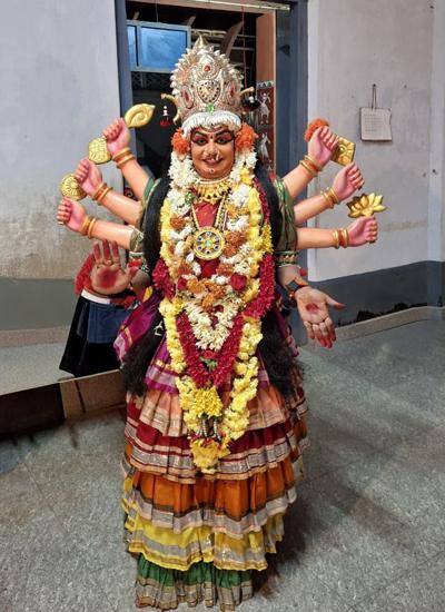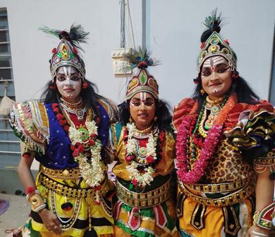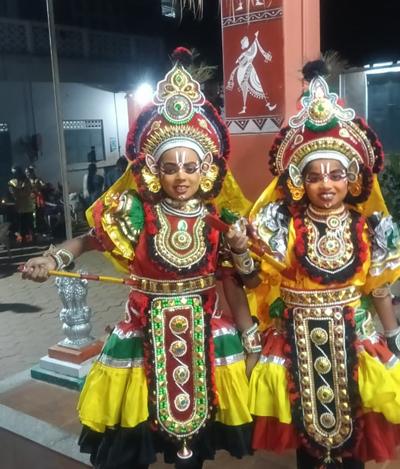 ಯಕ್ಷಗಾನದಲ್ಲಿ ಹಿಮ್ಮೇಳ ಭಾಗವತರಾಗಿ ಹೇಮಸ್ವಾತಿ ಕುರಿಯಾಜೆ, ಶ್ರುತಿ ಕಲಾ ,ಚೆಂಡೆ ಮದ್ದಳೆಯಲ್ಲಿ ಹರಿಪ್ರಸಾದ್ ಶೆಟ್ಟಿ ಇಚಲಂಪಾಡಿ, ಬಾಲಸುಬ್ರಹ್ಮಣ್ಯ ಭಟ್ ಗುತ್ತಿಗಾರು, ಕೃಷ್ಣ ಚೈತನ್ಯ ಪೇರಾಲು,ಚಕ್ರತಾಳದಲ್ಲಿ ಪುರುಷೋತ್ತಮ ಆಚಾರ್ಯ ಸುಳ್ಯ,ಮುಮ್ಮೇಳದಲ್ಲಿ ದೇವೇಂದ್ರನಾಗಿ ದೇವಿಕ ಕುರಿಯಾಜೆ,ಅಗ್ನಿಯಾಗಿ ಪೂಜ ಶ್ರೀ ಅಡ್ಯ,ವಾಯುವಾಗಿ ಹವೀಕ್ಷ ಗುತ್ತಿಗಾರು,ಮಾಲಿನಿಯಾಗಿ ಪ್ರಿಯಾ ಉಬರಡ್ಕ,ಬ್ರಹ್ಮನಾಗಿ ಹನೀಕ್ಷಾ ಗುತ್ತಿಗಾರು,ಸುಪಾರ್ಶ್ವಕನಾಗಿ ಚೈತಾಲಿ ಕಾಂಚೋಡು,ವಿದ್ಯುನ್ಮಾಲಿಯಾಗಿ ಪೃಥ್ವಿ ಶೆಟ್ಟಿ ಕಾಟುಕುಕ್ಕೆ,ಯಕ್ಷನಾಗಿ ಸಂದೇಶ್ ದೀಪ್ ರೈ ಕಲ್ಲಂಗಳ,ಮಹಿಷಾಸುರನಾಗಿ ಪ್ರೇಮಾ ಕಿಶೋರ್ ಪುತ್ತೂರು,ಮಾಲಿನಿದೂತನಾಗಿ ಭವಿಷ್ ಭಂಡಾರಿ ಪುತ್ತೂರು,ಶಂಖಾಸುರನಾಗಿ ಜ್ಯೋತಿ ಅಶೋಕ ಕೆದಿಲ,
