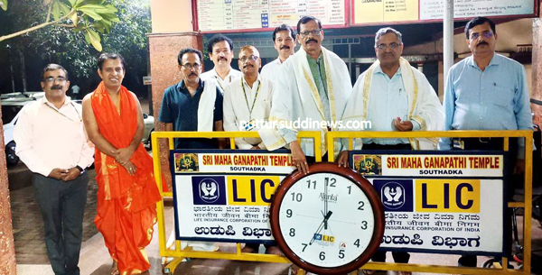ನೆಲ್ಯಾಡಿ: ಸೌತಡ್ಕ ಶ್ರೀ ಮಹಾಗಣಪತಿ ಕ್ಷೇತ್ರಕ್ಕೆ ಎಲ್ಐಸಿ ಉಡುಪಿ ವಿಭಾಗದ ವತಿಯಿಂದ ಬ್ಯಾರಿಕೇಡ್ ಹಾಗೂ ಬೃಹತ್ ಗಡಿಯಾರ ಕೊಡುಗೆಯಾಗಿ ನೀಡಲಾಯಿತು.