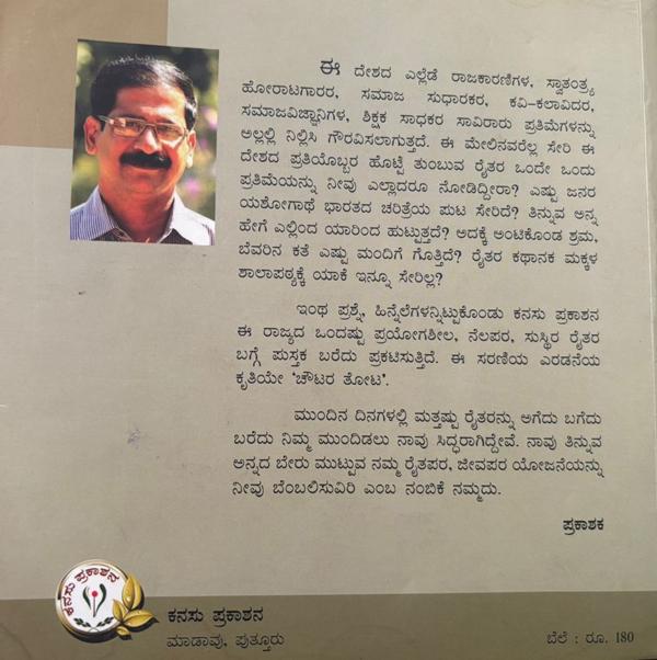 2022ರಲ್ಲಿ ಕನಸು ಪ್ರಕಾಶನದ ಅಡಿಯಲ್ಲಿ 200ರ ಒಳಗಿನ ಮೊತ್ತವನ್ನು ಸರಿದೂಗಿಸಿಕೊಂಡು ಕೃಷಿಕರಿಗೆ, ಕೃಷಿ ಆಶಕ್ತ, ಸಂಶೋಧಕರಿಗೆ ತೆರೆದಿಟ್ಟ ಪುಸ್ತಕ ಇದಾಗಿದ್ದು,ನಿಸ್ಸಂಶಯವಾಗಿಯೂ ಕೃಷಿ ಆಸಕ್ತಿ ಇರುವವರು ಕೃಷಿಯಲ್ಲಿ ಪ್ರಯೋಗ ಮಾಡ ಬಯಸುವವರು ಕೊಂಡು ಓದಲೇ ಬೇಕಾದ ಪುಸ್ತಕ .