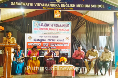 ಪುತ್ತೂರು: ದಕ್ಷಿಣ ಕನ್ನಡ ಜಿಲ್ಲಾ ಪೊಲೀಸ್ ಪುತ್ತೂರು ನಗರ ಠಾಣೆಯ ವತಿಯಿಂದ ಪುರುಷರಕಟ್ಟೆಯ ಸರಸ್ವತಿ ಶಾಲೆಯಲ್ಲಿ ಅಪರಾಧ ತಡೆ ಮಾಸಾಚರಣೆ ಕಾರ್ಯಕ್ರಮವು ಡಿ.10ರಂದು ನಡೆಯಿತು.