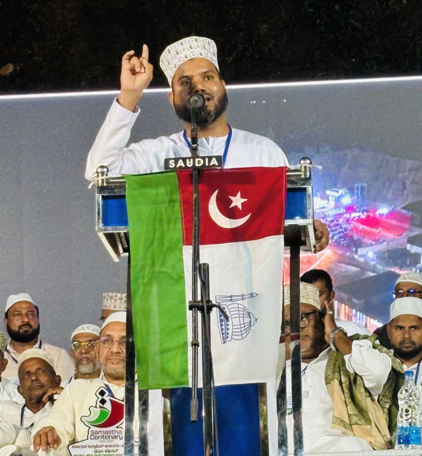 ಸಮಸ್ತ 100ನೇ ವರ್ಷದ ಹಿನ್ನೆಲೆಯಲ್ಲಿ ಮುಂದಿನ ಫೆಬ್ರವರಿ ತಿಂಗಳಲ್ಲಿ ಕೇರಳದಲ್ಲಿ ನಡೆಯುವ ಅಂತರಾಷ್ಟ್ರೀಯ ಮಹಾ ಸಮ್ಮೇಳನ ಹಿನ್ನೆಲೆಯಲ್ಲಿ ಡಿ.10ರಂದು ಕುಂಬ್ರ ಕೆ.ಐ.ಸಿ ಕ್ಯಾಂಪಸ್ ವಠಾರದಲ್ಲಿ ನಡೆದ ಪ್ರಚಾರ ಮಹಾ ಸಮ್ಮೇಳನದಲ್ಲಿ ಅವರು ಮುಖ್ಯ ಪ್ರಭಾಷಣ ನಡೆಸಿದರು.