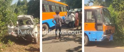 ವಿಟ್ಲ: ಇಲ್ಲಿನ ಮುಳಿಯ ಎಂಬಲ್ಲಿ ಕೆಎಸ್ಆರ್ಟಿಸಿ ಬಸ್ ಮತ್ತು ಓಮ್ನಿ ಕಾರು ನಡುವೆ ಭೀಕರ ರಸ್ತೆ ಅಪಘಾತ ಸಂಭವಿಸಿದ್ದು, ಒಬ್ಬರು ಸ್ಥಳದಲ್ಲೇ ಮೃತಪಟ್ಟಿದ್ದು, ಇಬ್ಬರು ಗಂಭೀರ ಗಾಯಗೊಂಡ ಘಟನೆ ನಡೆದಿದೆ.