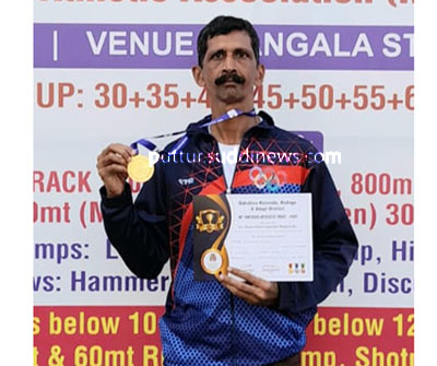 ಪುತ್ತೂರು: ಮಂಗಳೂರಿನ ಮಂಗಳಾ ಕ್ರೀಡಾಂಗಣದಲ್ಲಿ ನಡೆದ ದಕ್ಷಿಣ ಕನ್ನಡ, ಉಡುಪಿ ಮತ್ತು ಕೊಡಗು ಜಿಲ್ಲೆಗಳನ್ನು ಒಳಗೊಂಡ ಅಂತರ್ ಜಿಲ್ಲಾ ಮಾಸ್ಟರ್ಸ್ ಕ್ರೀಡಾ ಕೂಟದಲ್ಲಿ ವೇಗದ ನಡಿಗೆ ಹಾಗೂ ಜಾವೆಲಿನ್ ಎಸೆತದಲ್ಲಿ ವಿವೇಕಾನಂದ ಆಂಗ್ಲ ಮಾಧ್ಯಮ ಶಾಲೆಯ ಸಂಸ್ಕೃತ ಶಿಕ್ಷಕ ವೆಂಕಟೇಶ್ ಪ್ರಸಾದ್ ದರ್ಬೆತ್ತಡ್ಕ ಅವರು ಚಿನ್ನದ ಪದಕ ಗಳಿಸಿದ್ದಾರೆ.