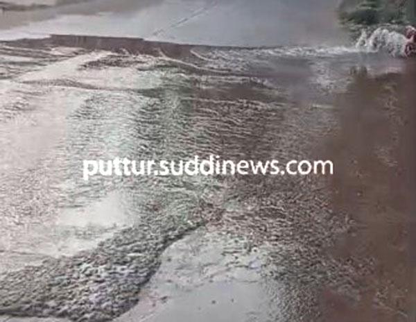 ಪುತ್ತೂರು : ಮಳೆಗಾಲದಲ್ಲಿ ಸದಾ ಹೊಳೆಯಂತಾಗುತ್ತಿರುವ ನೆಲ್ಲಿಕಟ್ಟೆ ಖಾಸಗಿ ಬಸ್ ನಿಲ್ದಾಣದ ಬಳಿಯ ರಸ್ತೆ ಇದೀಗ ಮಳೆ ಬಾರದಿದ್ದರೂ ರಸ್ತೆ ಹೊಳೆಯಂತಾಗಿದೆ. ರಸ್ತೆ ಬದಿಯಲ್ಲಿ ಕುಡಿಯುವ ನೀರಿನ ಪೈಪ್ ಒಡೆದು ನೀರು ಪೋಲಾಗುತ್ತಿದೆ.